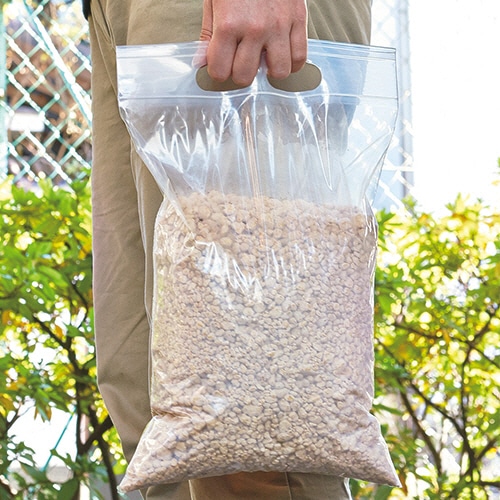 丈夫で持ち運びに便利な取っ手穴付チャック袋。
