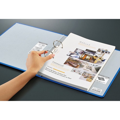商品仕様 | ●サイズ/A4タテ ●色/青 ●寸法/W261×H307mm ●背幅/56mm ●リング内径/39mm ●表紙厚/2.4mm ●とじ穴間隔/80mm ●とじ厚/33mm ●収容枚数/コピー用紙約330枚 ●穴数/2穴 ●背見出し紙/有り ●材質/表紙:PPフィルム貼り(芯材:古紙パルプ配合)、とじ具:金属製 ●付属品/プロテクター2枚、カラー仕切カード(5山・1組) ●その他仕様/●替背紙式 ●サ イ ズ/A4 ●カラー/ブルー(系) |