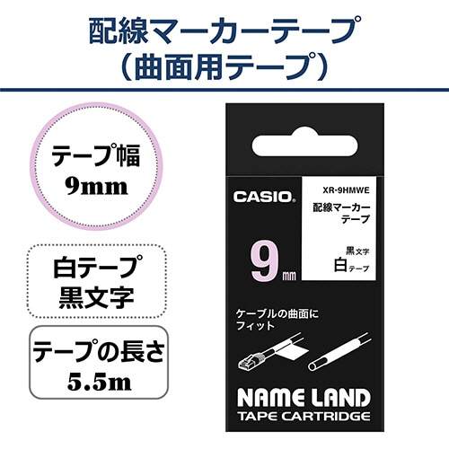 カシオ NAME LAND 配線マーカーテープ 9mm×5.5m 白/黒文字 XR-9HMWE 1個
