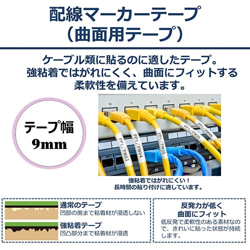 商品仕様 | ●テープ種類/配線マーカーテープ ●テープ幅/9mm ●テープ長さ/5.5m ●テープ色/白 ●文字色/黒 ●シリーズ名/NAME LAND |