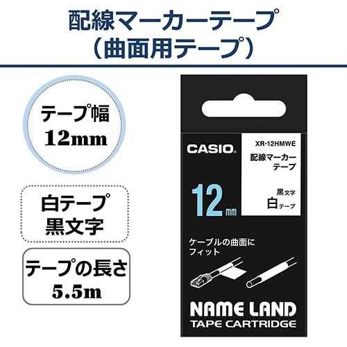 カシオ NAME LAND 配線マーカーテープ 12mm×5.5m 白/黒文字 XR-12HMWE 1個