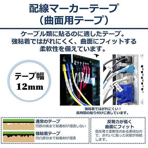 商品仕様 | ●テープ種類/配線マーカーテープ ●テープ幅/12mm ●テープ長さ/5.5m ●テープ色/白 ●文字色/黒 ●シリーズ名/NAME LAND |