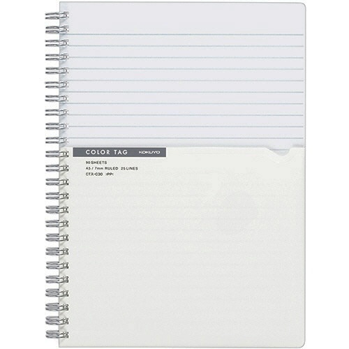 | 商品仕様 | ●サイズ/A5 ●寸法/タテ210×ヨコ148mm ●罫/A罫 ●罫幅/7mm ●枚数/90枚 ●行数/25行 ●表紙色/透明 ●材質/表紙:透明PP、中紙:上質紙 ●その他仕様/●仕様:ツインリング、ミシン目入 |