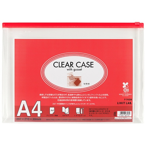 リヒトラブ クリヤーケース(マチ付) A4ヨコ 赤 F-74SM 1枚