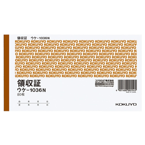 コクヨ 領収証 A6ヨコ型 80枚 ウケ-1036N 1冊