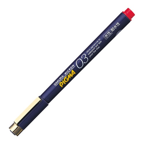 商品仕様 | ●タイプ/使い切りタイプ ●インク種類/水性顔料 ●インク色/赤 ●芯形状/丸芯 ●線幅/0.3mm ●全長/135mm ●軸径/10.5mm ●材質/軸・キャップ・尾栓:PP、クリップ:スチール、先栓:真鍮、ペン先:POM ●重量/9g ●備考/全長はキャップ付きのサイズ ●シリーズ名/ピグマ ●インクカラー/レッド(系) |