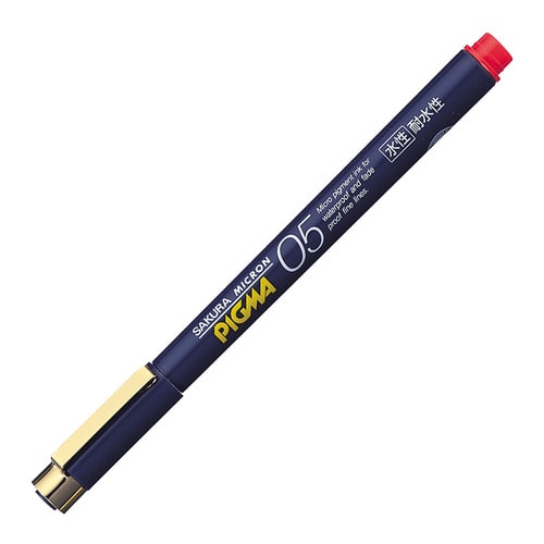 | 商品仕様 | ●タイプ/使い切りタイプ ●インク種類/水性顔料 ●インク色/赤 ●芯形状/丸芯 ●線幅/0.5mm ●全長/135mm ●軸径/10.5mm ●材質/軸・キャップ・尾栓:PP、クリップ:スチール、先栓:真鍮、ペン先:POM ●重量/9g ●備考/全長はキャップ付きのサイズ ●シリーズ名/ピグマ ●インクカラー/レッド(系) |