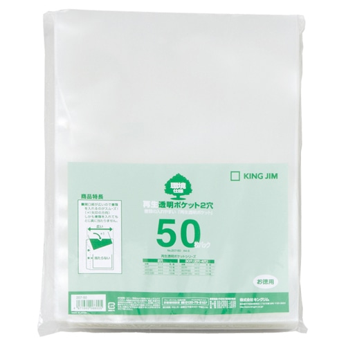 キングジム 再生透明ポケット A4タテ 2穴 台紙なし 207-50 1パック(50枚)