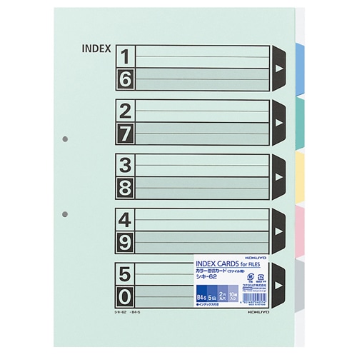 コクヨ カラー仕切カード(ファイル用・5山見出し) B4タテ 2穴 5色+扉紙 シキ-62 1パック(10組)