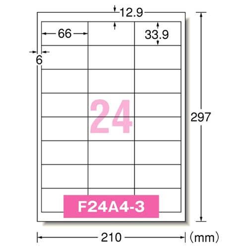 | 商品仕様 | ●サイズ/A4 ●シートサイズ/210×297mm ●ラベルサイズ/66×33.9mm ●面付け/24面(3列×8段) ●紙質/上質紙 ●ラベルの厚み/0.09mm ●総厚み/0.15mm ●白色度/90% ●紙色/ホワイト ●再剥離/○ ●その他仕様/●マット紙 ●備考/※コピー・レーザープリンター使用の場合は厚紙モード・手差し給紙でお使いください。お使いの機種によっては対応しない場合がございます。 ※インクジェットプリンタはにじみが生じる場合がございます。 |