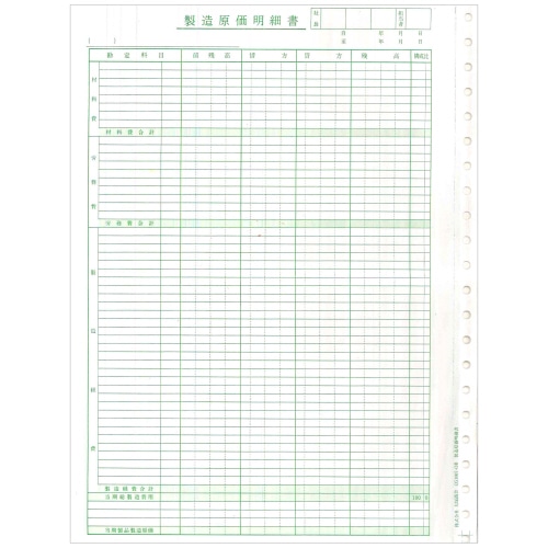東京ビジネス 製造原価明細書 (科目なし) 連帳 CG1007OB 1冊(50セット)