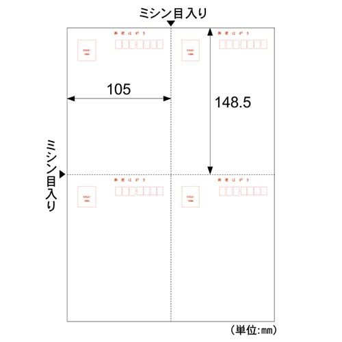 ミシン目で切り離しできる、郵便番号枠入りはがき用紙