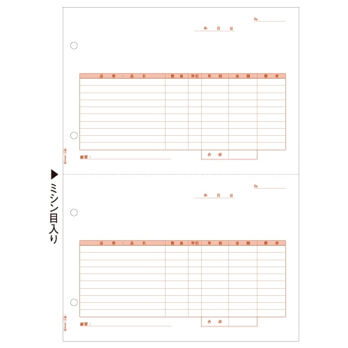 | 商品仕様 | ●様式/仕切書 ●用紙タイプ/カット紙 ●サイズ/A4タテ ●寸法/297×210mm ●ミシン目切り離し後サイズ/148.5×210mm ●面付/2面 ●紙質/上質紙 ●とじ穴/4穴 ●とじ穴間隔/80mm ●坪量/70g/m2 ●厚み/約0.09mm ●白色度/80% ●対応ソフト/市販の各種業務パッケージソフト ●備考/※対応パッケージソフトの最新情報はメーカーホームページをご覧ください。 ※2021年12月頃より順次、原紙の変更に伴い白色度が約78%→約80%に変更になります。 |