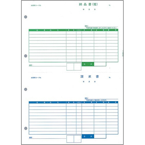 商品仕様 | ●様式/納品書(控)/請求書 ●用紙タイプ/単票 ●サイズ/A4タテ ●寸法/297×210mm ●面付/2面 ●対応ソフト/PCA商魂・売上じまんシリーズ |