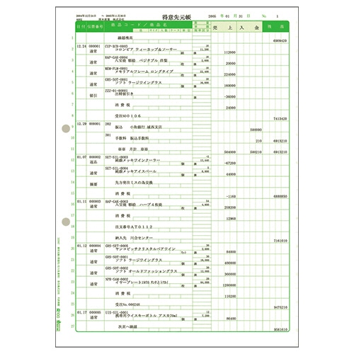商品仕様 | ●様式/元帳(得意先/仕入先兼用) ●用紙タイプ/単票 ●サイズ/A4縦 ●寸法/297×210mm ●とじ穴/2穴 ●対応ソフト/弥生販売 スタンダード/プロフェッショナル/ネットワーク、大富豪Win95/NT |
