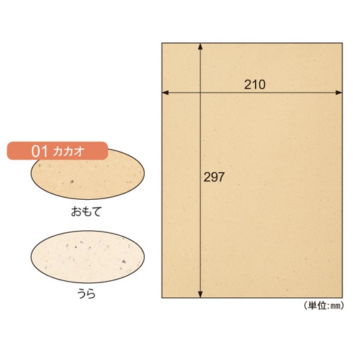 | 商品仕様 | ●サイズ/A4 ●寸法/210×297mm ●紙質/カラー素材紙(アップサイクル素材、カカオ) ●坪量/120g/m2程度 ●厚み/約0.13mm ●紙色/カカオ ●サ イ ズ/A4 |