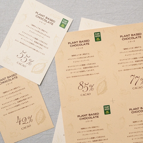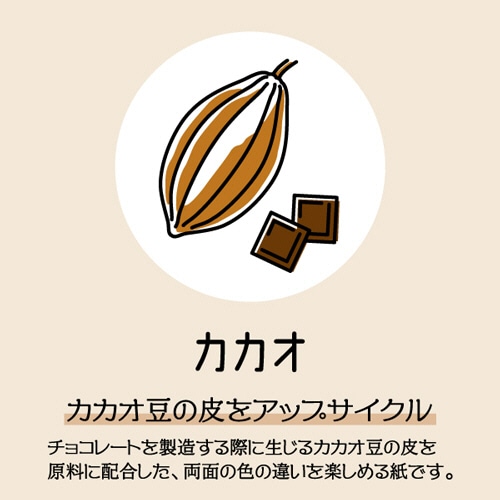 ●用紙の表と裏で色が異なり、印刷内容に合わせてお選びいただけます。用紙のどちらの面にもカカオハスク粒が入っています。