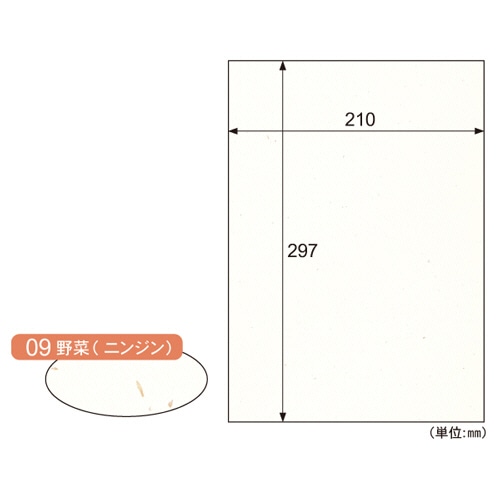 商品仕様 | ●サイズ/A4 ●寸法/210×297mm ●紙質/カラー素材紙(アップサイクル素材、ニンジン) ●坪量/104.7g/m2程度 ●厚み/約0.14mm ●紙色/ニンジン ●サ イ ズ/A4 |