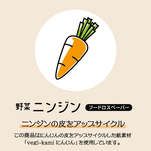 ●にんじんの皮をアップサイクルした紙素材「vegi-kami にんじん」を使用しています。