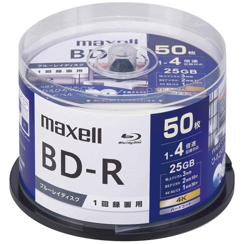 マクセル 録画用BD-R 130分 1-4倍速 ホワイトワイドプリンタブル スピンドルケース BRV25WPG.50SP 1パック(50枚)