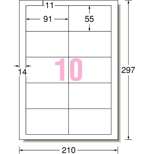 | 商品仕様 | ●サイズ/A4 ●シートサイズ/210×297mm ●ラベルサイズ/55×91mm ●面付け/10面 ●カット内容/四辺余白付 ●紙質/上質紙 ●総厚み/0.13mm ●白色度/81% ●その他仕様/●名刺サイズ ●手書き対応 ●備考/※コピー、レーザーは厚紙モード・手差し給紙でお使いください。機種によっては対応しない場合がございます。 ※インクジェットはにじみが生じる場合がございます。 |