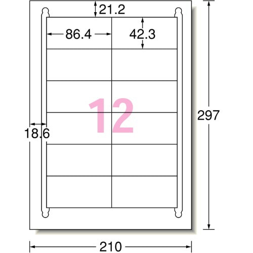 商品仕様 | ●サイズ/A4 ●シートサイズ/210×297mm ●ラベルサイズ/42.3×86.4mm ●面付け/12面 ●カット内容/四辺余白付 ●紙質/上質紙 ●総厚み/0.13mm ●白色度/81% ●その他仕様/●手書き対応 ●備考/※コピー、レーザーは厚紙モード・手差し給紙でお使いください。機種によっては対応しない場合がございます。 ※インクジェットはにじみが生じる場合がございます。 |