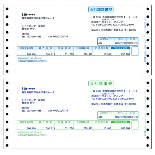 ●合計請求書 連続用紙 15インチドットプリンタ用