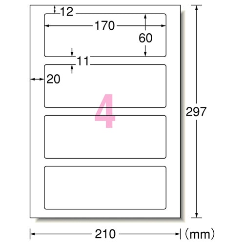 | 商品仕様 | ●サイズ/A4 ●シートサイズ/210×297mm ●ラベルサイズ/60×170mm ●面付け/4面 ●紙質/光沢フィルム ●ラベルの厚み/0.15mm ●紙色/ホワイト ●材質/ラベル・透明保護フィルム:ポリエステルフィルム ●水に強い/○ ●強粘着/○ ●屋外用/○ ●その他仕様/●保護フィルム厚さ:0.1mm ●備考/※直射日光下での長期間の使用は避けてください。 ※顔料インクの場合、インクの乾燥に時間がかかります。 |