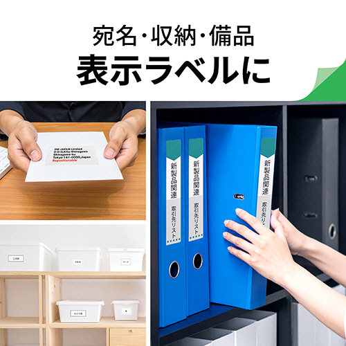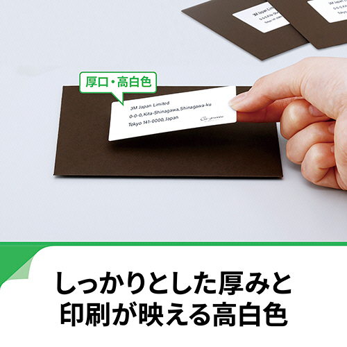 | 商品仕様 | ●サイズ/A4 ●ラベルサイズ/83.8×42.3mm ●面付け/12面 ●カット内容/四辺余白付(角丸) ●紙質/上質紙 ●総厚み/0.19mm ●白色度/98% ●紙色/ホワイト ●その他仕様/●手書き対応 ●備考/※コピー機、レーザープリンタは厚紙モード・手差し給紙でお使いください。機種によっては対応しない場合がございます。 ※インクジェットはにじみが生じる場合がございます。 |