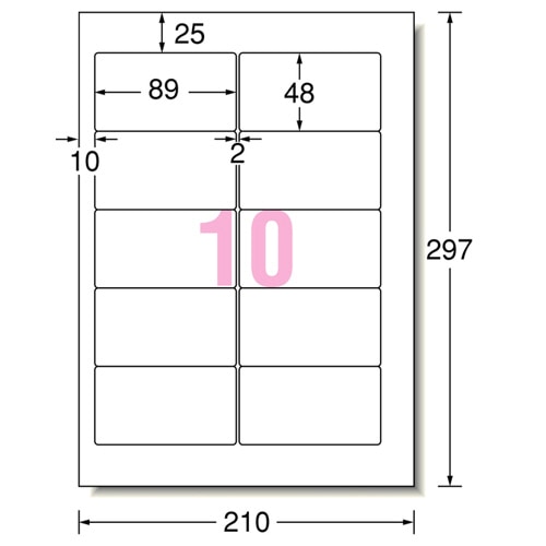 | 商品仕様 | ●サイズ/A4 ●シートサイズ/210×297mm ●ラベルサイズ/48×89mm ●面付け/10面 ●坪量/120g/m2 ●ラベルの厚み/0.07mm ●総厚み/0.13mm ●白色度/81% ●紙色/白無地 ●その他仕様/●手書き対応 ●備考/※厚紙モード、手差し給紙でお使いください。 ※お使いの機種によっては対応しない場合がございます。 |