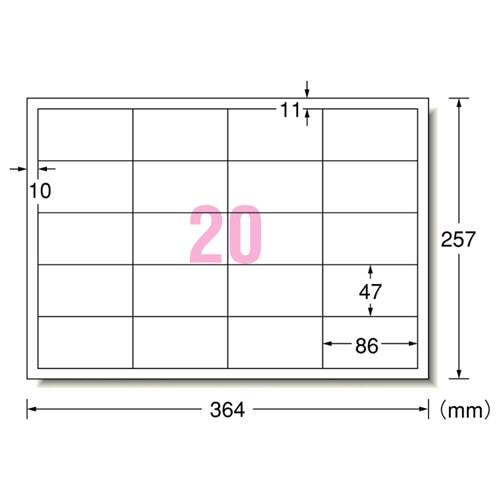 商品仕様 | ●サイズ/B4 ●シートサイズ/257×364mm ●ラベルサイズ/47×86mm ●面付け/20面 ●カット内容/四辺余白 ●紙質/上質紙 ●総厚み/0.13mm ●備考/※コピー、レーザーは厚紙モード・手差し給紙でお使いください。機種によっては対応しない場合がございます。 |