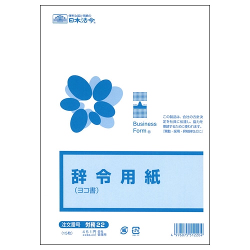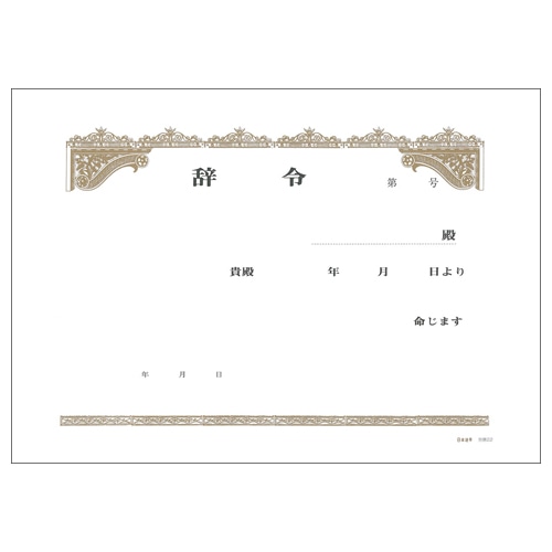 日本法令 辞令用紙(ヨコ書) B5 文章入 労務22 1パック(15枚)