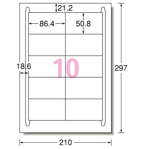 エーワン ラベルシール[プリンタ兼用] 再生紙・ホワイト A4 10面 86.4×50.8mm 四辺余白付 31340 1冊(100シート)