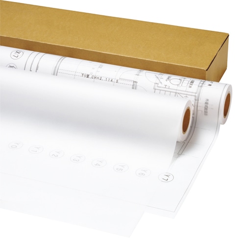 ※トレーシングペーパーは、空気中の湿気を吸収しやすい性質を持っています。そのため、プロッターに設置したまま放置されますと、湿気を吸収して波打ち状のシワが発生し、使用できなくなる場合がございます。出力時以外は、必ず包装に使用してある袋に入れ、密封して保管していただきます様、お願い致します。また、高温多湿の場所では保管しない様、お願い致します。