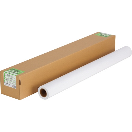 商品仕様 | ●サイズ/36インチロール ●寸法/幅914mm×長さ20m ●紙管内径/2インチ ●坪量/約185g/m2 ●厚み/約0.135mm ●白色度/約90%(ISO) ●対応インク/水性染料・顔料系インク ●対応プリンター/水性インクジェットプリンター用 ●その他仕様/●基材:PETフィルム |