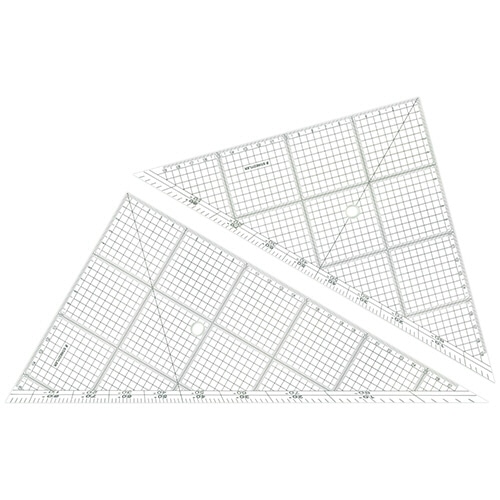 | 商品仕様 | ●種類/三角定規 ●目盛/1mm ●厚さ/2mm ●材質/アクリル製 ●その他仕様/●30cm幅 ●鉛筆、シャープペンシル用 ●45°、60°ペア ●5mm方眼、分度目盛付き ●鏡面仕上げ |