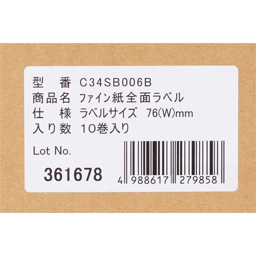 エプソン マット紙ラベル1 全面ラベル ラベルサイズ76mm幅 約39m C34SB006B 1箱(10巻)