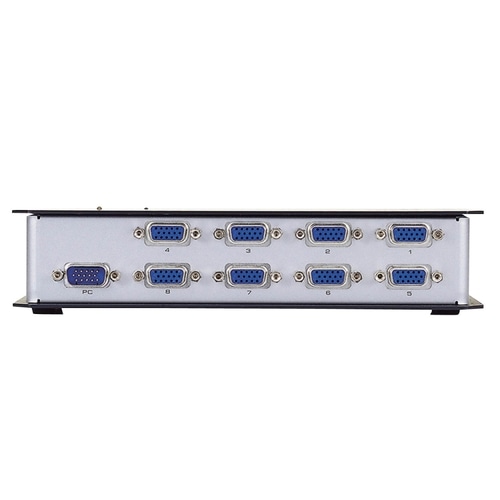 | 商品仕様 | ●回路数/8分配 ●インターフェース/入力:ミニD-Sub15ピン(ミニ)オス×1、出力:ミニD-Sub15ピン(ミニ)メス×8 ●最大表示解像度/1920×1440 ●寸法/W206×D88×H41.7mm ●その他仕様/●出力ポート数:8 ●付属品/専用VGAケーブル1.8m×1本、専用ACアダプタ、取扱説明書 ●保証期間/1年 ●備考/メーカーHPはこちら |