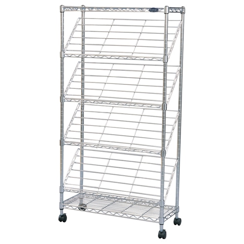 | 商品仕様 | ●外寸/W660×D275×H1260mm ●重量/11.8kg ●段数/4段 ●耐荷重/棚板(上下段用):75kg、ななめ棚板:10kg、全体:100kg ●材質/棚板・ポール:スチール(クロームメッキ)、棚板固定部品:ABS樹脂、キャスター:ナイロン樹脂 ●脚部仕様(キャスター/アジャスター)/キャスター ●必要工具/ゴムハンマー ●製造国/中国 ●付属品/キャスター ●その他仕様/●カギ有無:なし ●備考/※お客様組み立て商品。 |