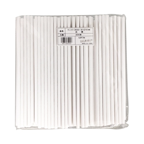 商品仕様 | ●タイプ/ストレート ●寸法/長さ210×直径6mm ●色/白 ●個包装/バラ ●材質/クラフト紙 ●生産国/中国 ●備考/※紙製の為、長時間ドリンクにつけておくことで水分を含むと、柔らかくなってきます。また、プラスチックのストローに比べ弾力に欠けるため、衝撃により若干の変形の恐れがあります。 |