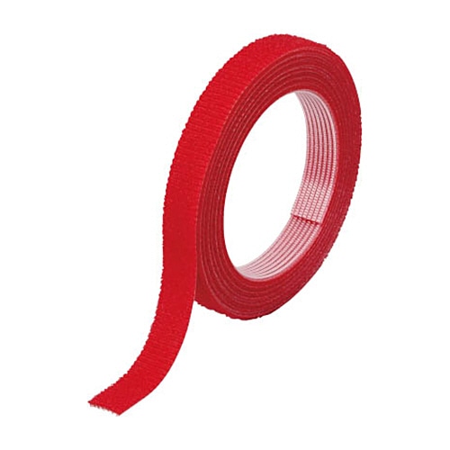 商品仕様 | ●寸法/幅10mm×長さ1.5m ●厚さ/2mm ●色/赤 ●材質/フック面:ポリプロピレン、ループ面:ナイロン |
