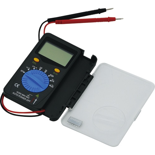 | 商品仕様 | ●寸法/W81×D116×H13mm ●重量/100g ●その他仕様/●最大表示:4000カウント ●直流電圧:400V ●交流電圧:400V ●直流電流:200mA ●交流電流:200mA ●抵抗:20MΩ ●検波方式:平均値整流(MEAN) ●電源:ボタン型アルカリ電池(LR44)×2個(別売) ●連続使用時間:160時間 |