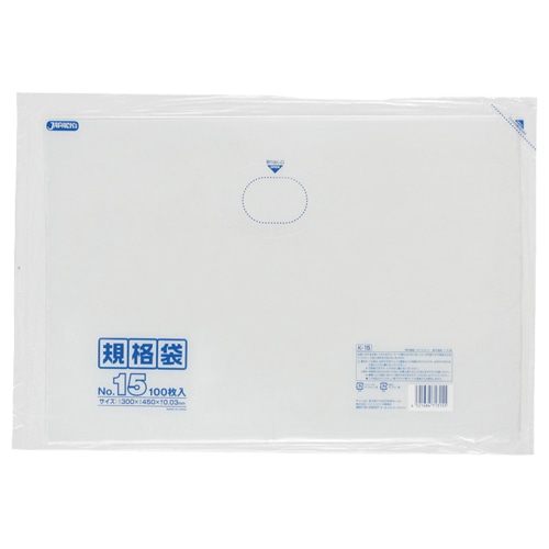 ジャパックス 規格袋 15号 ヨコ300×タテ450×厚み0.03mm K-15 1パック(100枚)