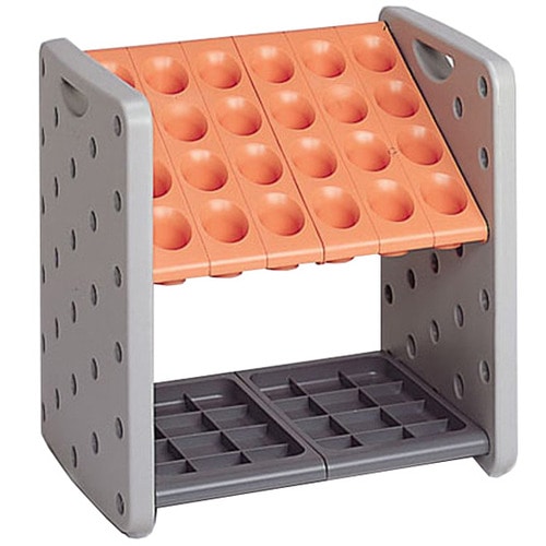 商品仕様 | ●収納本数/24本用 ●寸法/W500×D362×H496mm ●重量/4.5kg ●色/オレンジ ●材質/シュート・受皿:再生PP、側板:PE、フレームパイプ:スチールパイプ(ユニクロメッキ) ●必要工具/六角レンチ ●付属品/六角レンチ |