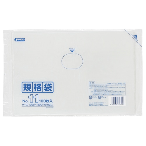 ジャパックス 規格袋 11号 ヨコ200×タテ300×厚み0.03mm K-11 1パック(100枚)
