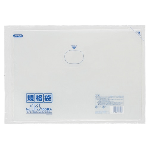 ジャパックス 規格袋 14号 ヨコ280×タテ410×厚み0.03mm K-14 1パック(100枚)