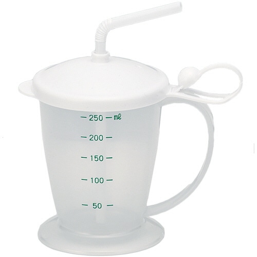 ●飲みやすい形状。傾斜をつけているので、ストローなしでも頭やコップを大きく傾けなくてもラクに飲むことができます。