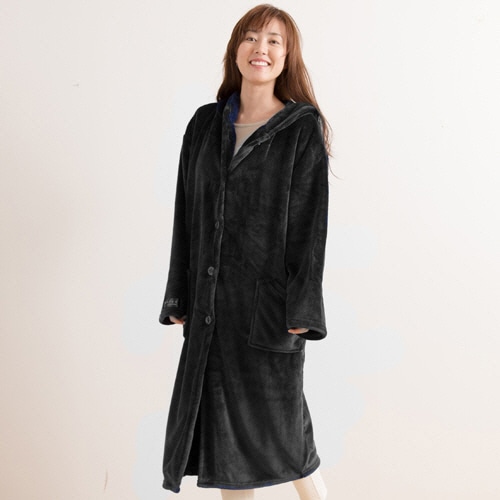 | 商品仕様 | ●種類/着る毛布 ●色/ブラック ●材質/毛羽部分:ポリエステル100%、グランド部分:ポリエステル100%・マイクロファイバー300g/m2 ●その他仕様/●男女兼用 ●サイズ:フリー ●着丈:110cm ●肩幅:50cm ●袖丈:55cm ●フード付 ●備考/※季節商品のため、数に限りがございます。 ※商品の特性上、若干色が異なる場合があります。 ※静電気防止のカーボン糸(黒色)が透けて見える場合がございます。 |