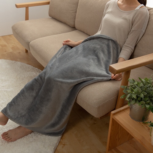 ●極細繊維が冷気を遮り暖かさをキープ。帯電しにくく、乾燥した冬にもやさしいひざ掛け、色はグレーです。