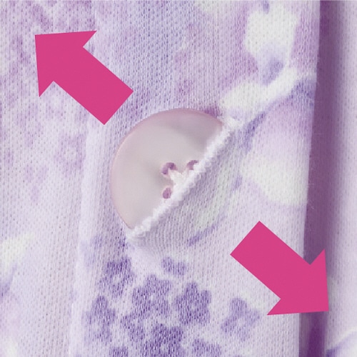 ●つかみやすい大きめボタンとななめボタンホールでラクに留め外しができます。